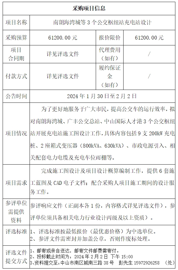 中山市公共交通运输集团有限公司南朗海湾城等3个公交枢纽站充电站设计