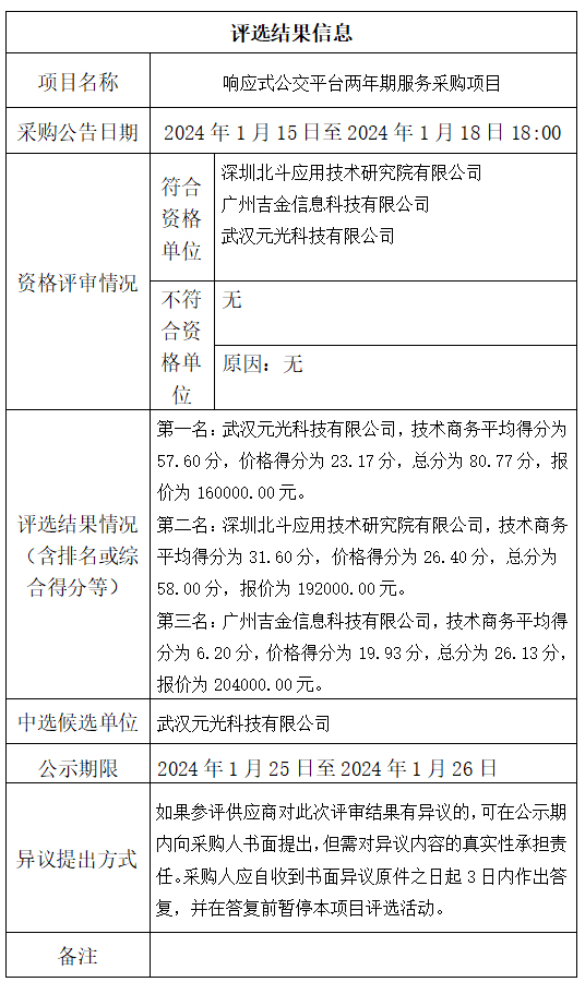 中山市公共交通运输集团有限公司响应式公交平台两年期服务采购项目评选结果公示