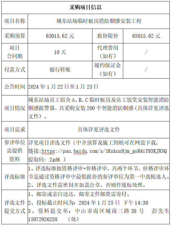 城东站场临时板房消防烟感安装工程(评选文件)