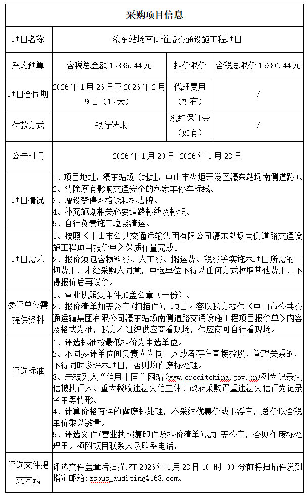 中山市公共交通运输集团有限公司濠东站场南侧道路交通设施工程项目