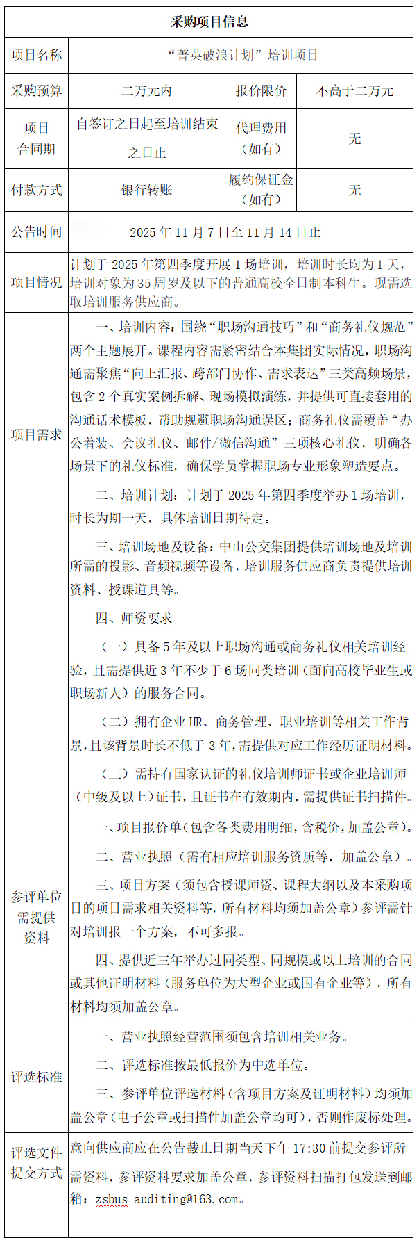 中山市公共交通运输集团有限公司“菁英破浪计划”培训项目