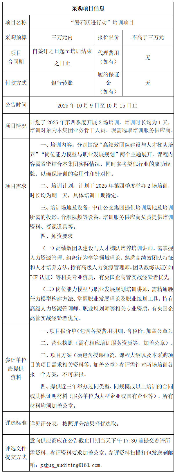 中山市公共交通运输集团有限公司“磐石跃进行动”培训项目