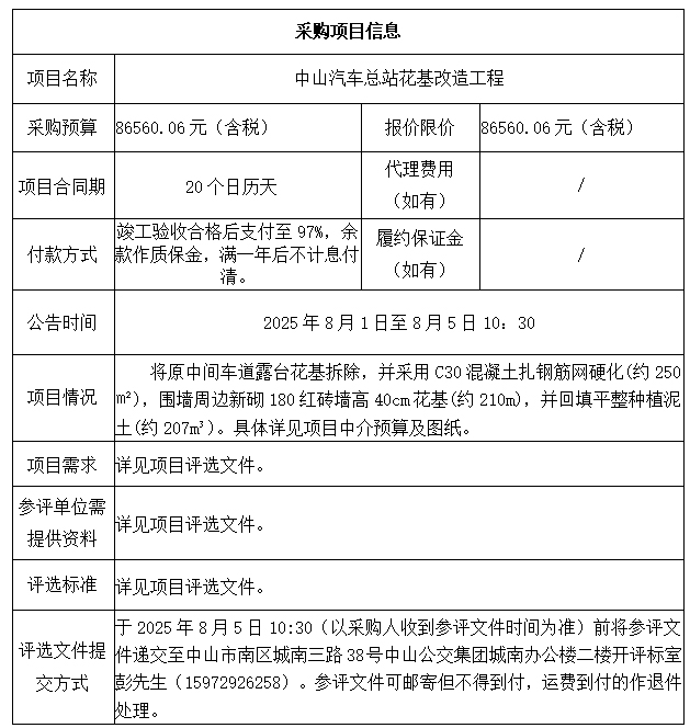 中山市公共交通运输集团有限公司中山汽车总站花基改造工程评选文件