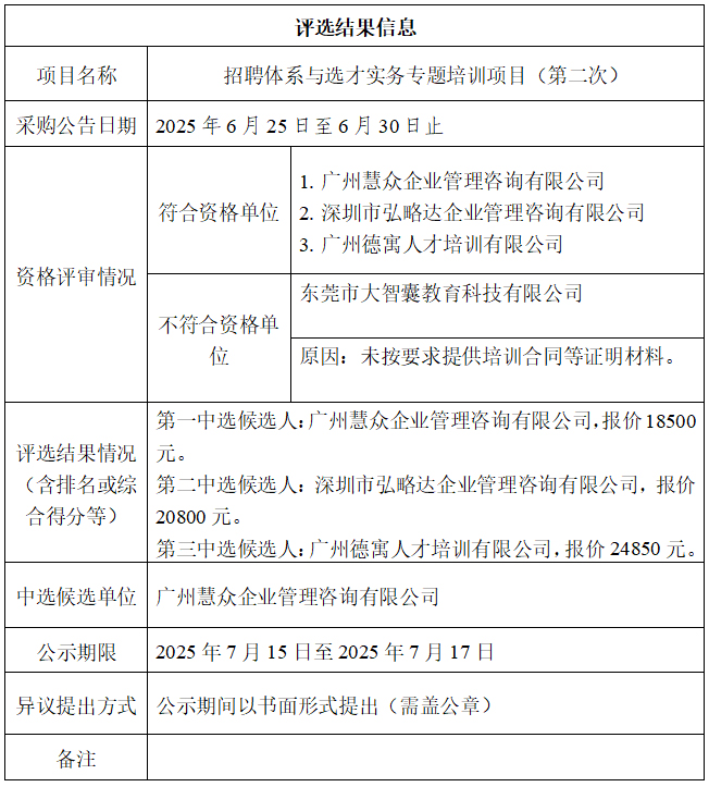 中山市公共交通运输集团有限公司招聘体系与选才实务专题培训项目(第二次)评选结果公示