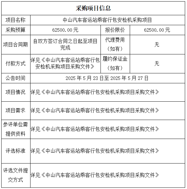 中山汽车客运站乘客行包安检机采购项目采购文件