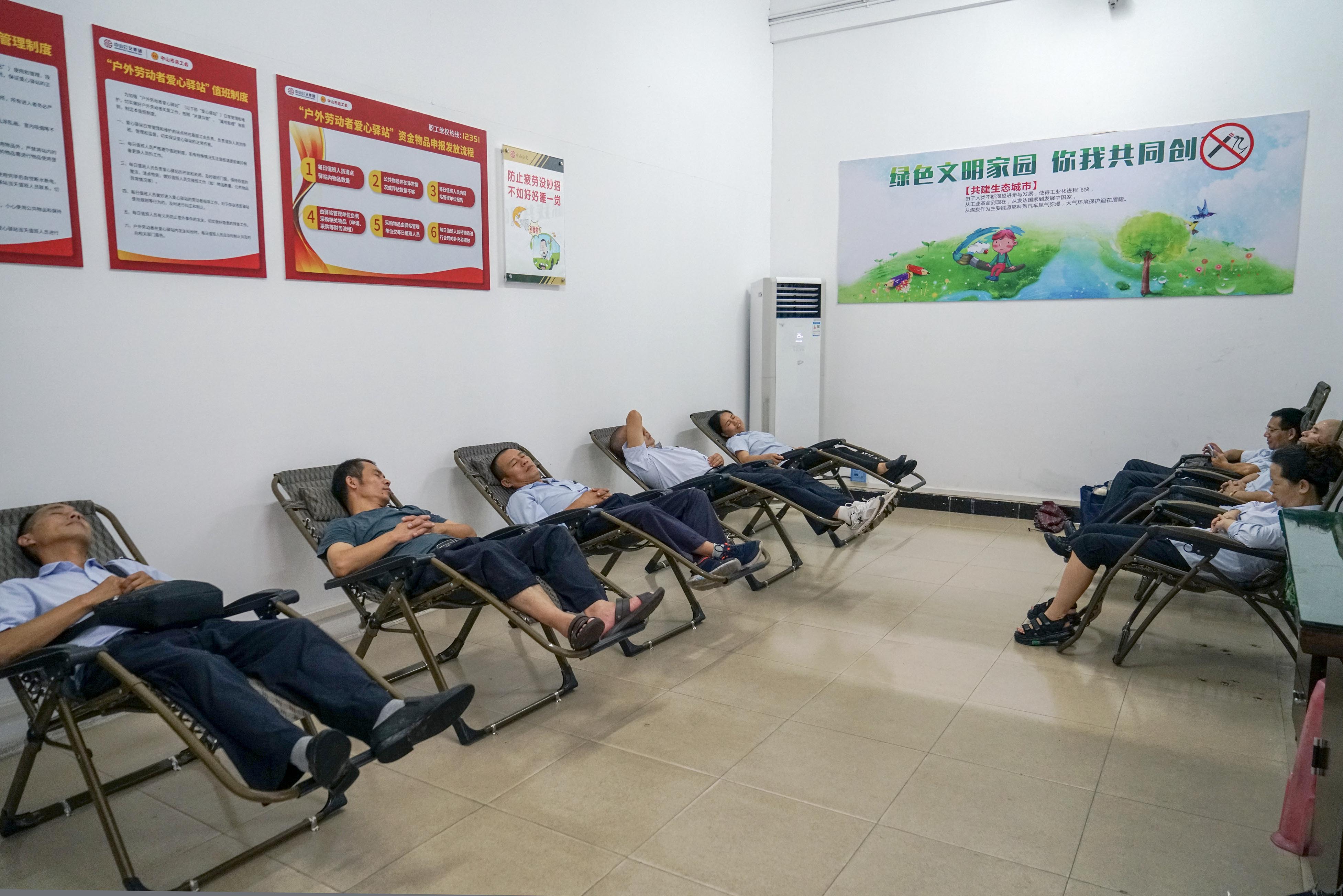 图为驾驶员在休息室休息