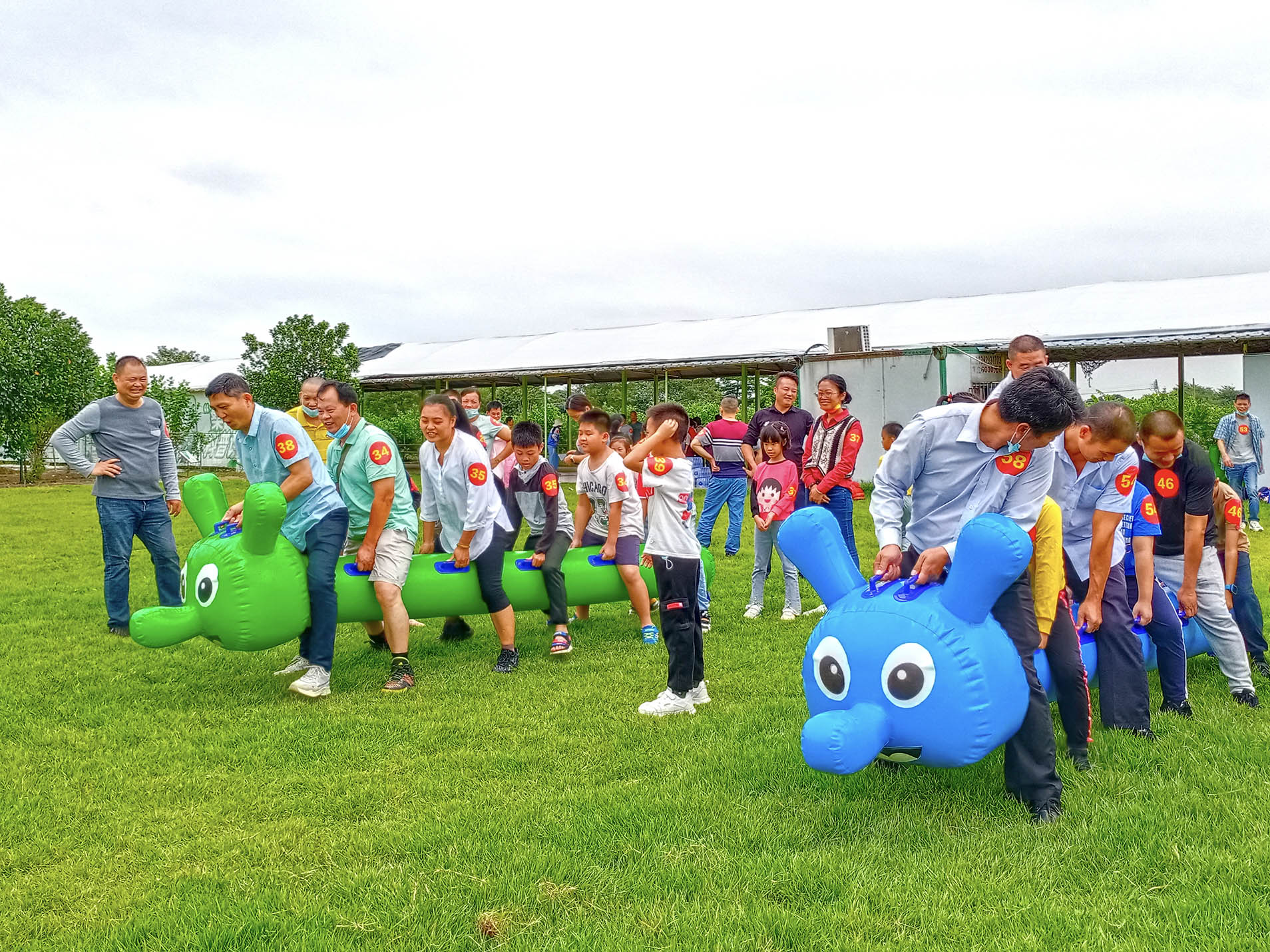图为员工亲子们开展毛毛虫比赛