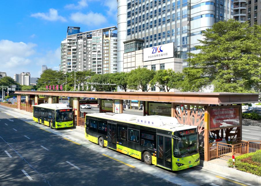 自2014年以来,中山公交集团积极参与城市生态文明建设,通过新增和更新纯电动公交车,践行绿色低碳的公交发展战略,并在2020年9月1日全面置换纯电动公交车,实现“碳达峰”。同时,利用夜间低谷电价时段集中充电,既降低运营成本,又减少能源浪费、缓解电网峰谷压力,2024年底谷电利用率达71.04%。据统计,自全面实现纯电动化以来,中山公交集团使用新能源车比使用燃气车每年减少碳排放约10万吨,取得了良好的环境和社会效益。除此,中山公交集团于2024年6月建成集团首个光伏发电自发自用的示范站点——深中跨市公交博览中心枢纽站,装机容量约47千瓦。自投运以来,深中跨市公交博览中心公交枢纽屋顶光伏系统持续稳定地为枢纽站照明、办公及充电桩等设施提供清洁电力。截至2024年12月,该站点累计发电3.5万千瓦时,相当于减少二氧化碳排放约37吨。