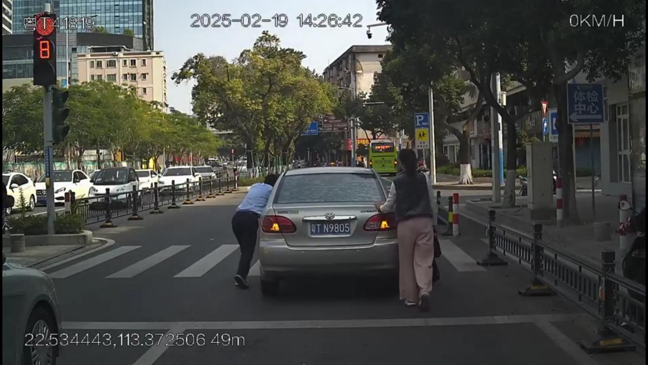 2月19日14时24分,城东车队驾驶员闫建鹏驾驶粤t41819号公交车执行005线路营运任务。当车辆行驶至莲员东路苏华赞医院红绿灯口时,他发现前方一辆私家车打着双闪停在路中间,无法继续前行。由于该路段人流密集、车流量大,不仅影响了交通秩序,还存在安全隐患。闫师傅立即将公交车安全停靠,下车询问情况。得知私家车因故障无法启动后,他毫不犹豫地协助车主推车。短短三分钟内,两人合力将故障车辆推至路边,成功化解了潜在的交通拥堵和安全隐患。私家车车主对闫师傅的及时帮助深表感谢,而闫师傅则默默返回车内,继续投入营运工作。