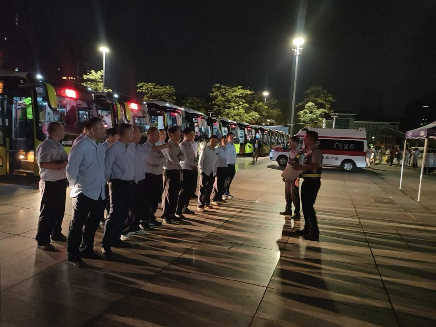 图为驾驶员凌晨在指定接运地地点集中
