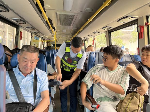 国庆期间,中山公交集团强化了现场安保工作,安排管理人员在上站上线安全检查、叮嘱和疏导。在公交首末站安排安保人员对每位乘客及其携带的行李进行细致的安全检查,严禁携带易燃易爆等危险品上车,并提醒乘客佩戴安全带。这一系列的严格安检措施有效保障了车内环境的安全稳定。同时,集团领导还亲自带队前往深中跨市公交博览中心枢纽等枢纽站督导检查,确保万无一失。