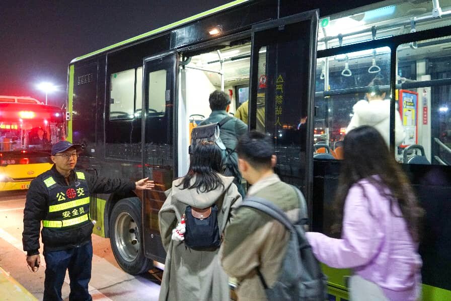 从正午淡阳到深夜散场,接驳车夜间离场时段增派至300多辆,同时安排100多辆储备运力,根据现场客流高频次往返,智能调度系统实时监控客流,确保每位乐迷离场时“车等人”而非“人等车”,有效疏解了瞬时大客流,确保市民游客高效集散。
