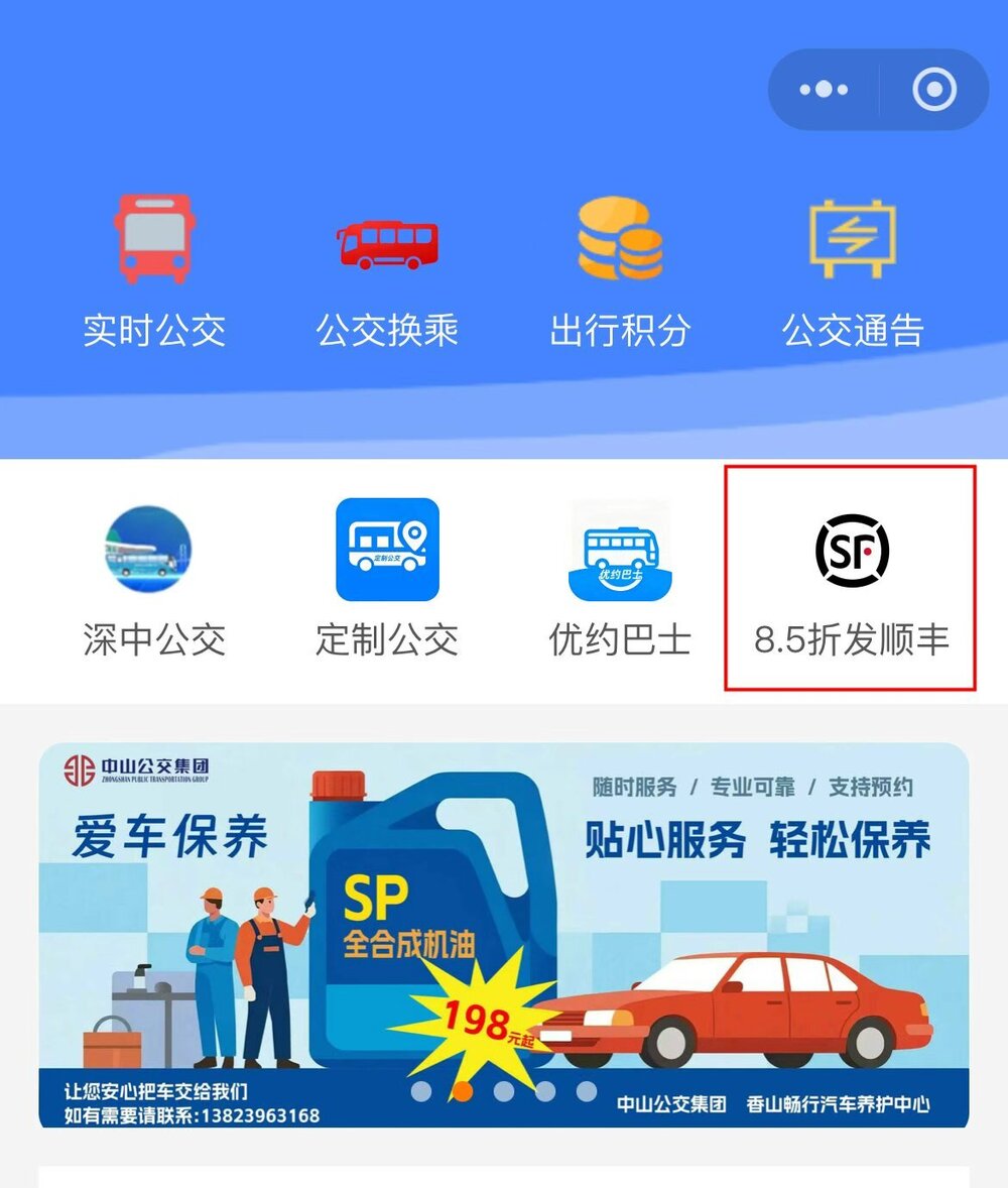 图为中山公交集团“香山畅行”小程序下单享受8.5折寄件优惠