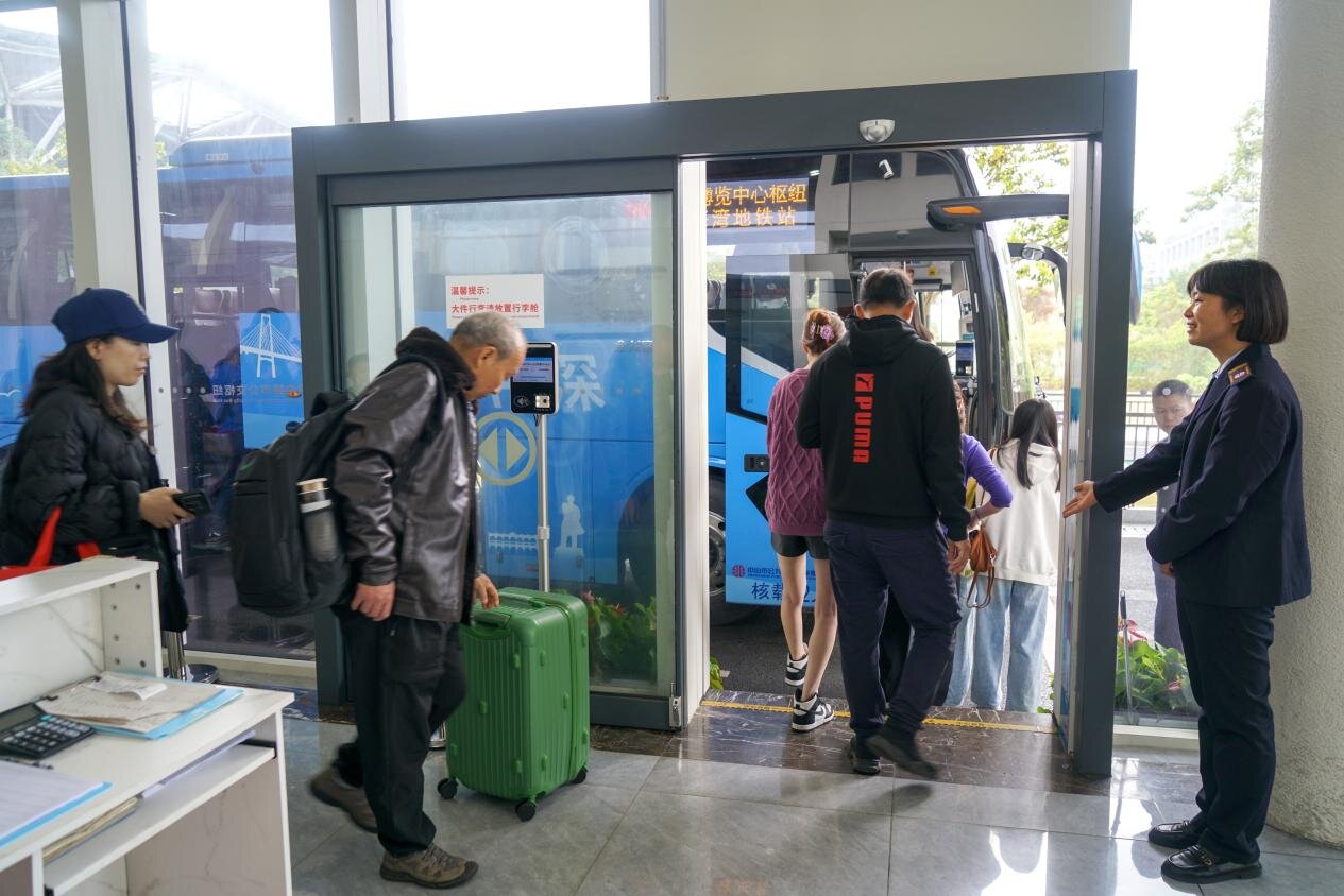 图为市民乘坐兴中广场春节文旅免费接驳专线