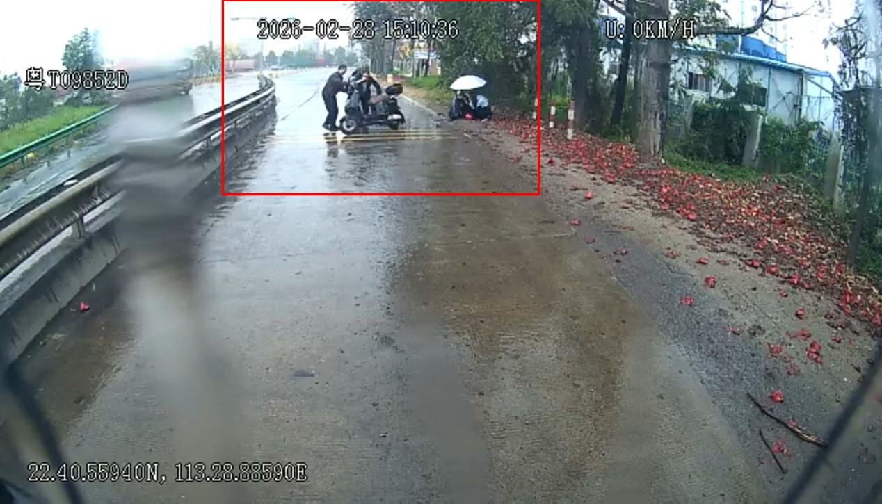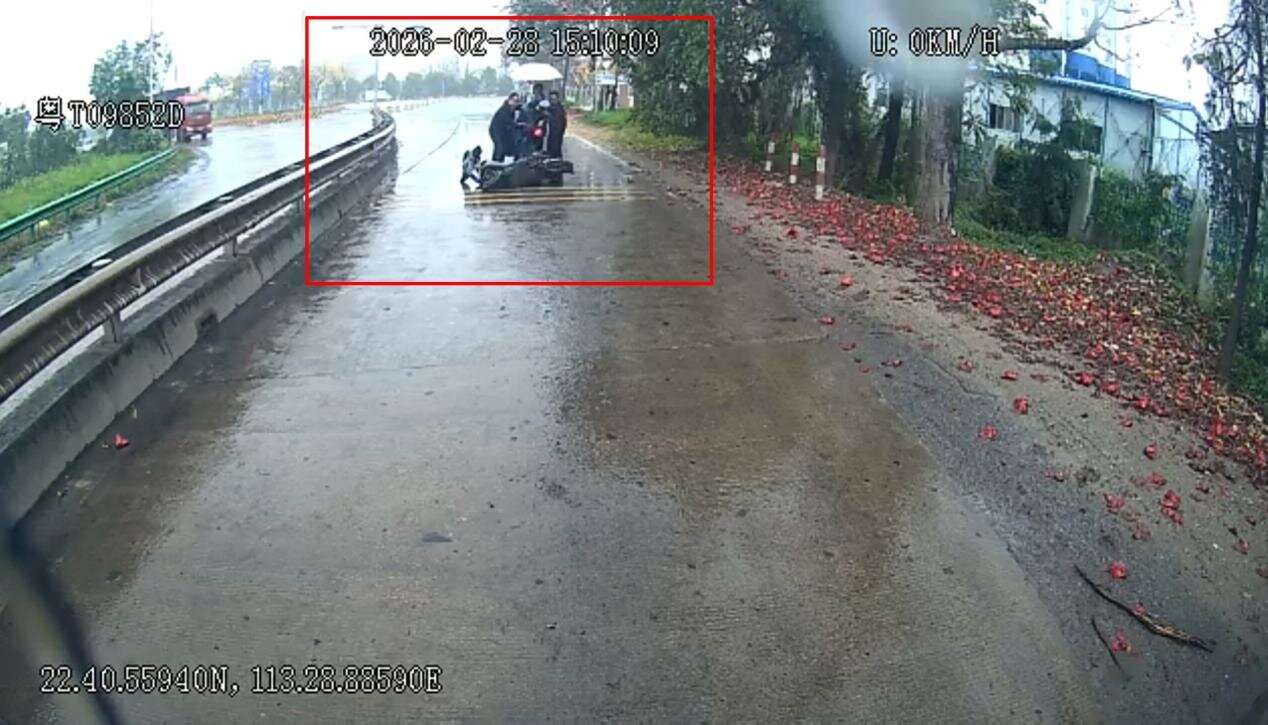 2月28日,民众车队驾驶员何泽雨驾驶公交车执行217线路营运任务,沿三角高平往太阳城方向行驶时,发现前方一名男子骑电动车摔倒,车辆压身、一动不动。何师傅立即开启双闪靠边停车,向乘客说明情况后,冒雨下车查看男子情况,并迅速在路面设置警示,避免造成二次伤害。因电动车较重且路面湿滑,何师傅向车内乘客求助:“大家搭把手帮忙下,注意脚下防滑!”多名乘客积极响应,冒雨下车帮扶。大家分工协作,先将男子搀扶到安全区域并为其撑伞遮雨,然后合力将电动车扶起推到一旁。何师傅仔细询问男子伤势,确认其意识清醒、无需报警送医且已联系家人后,才返回岗位继续营运。