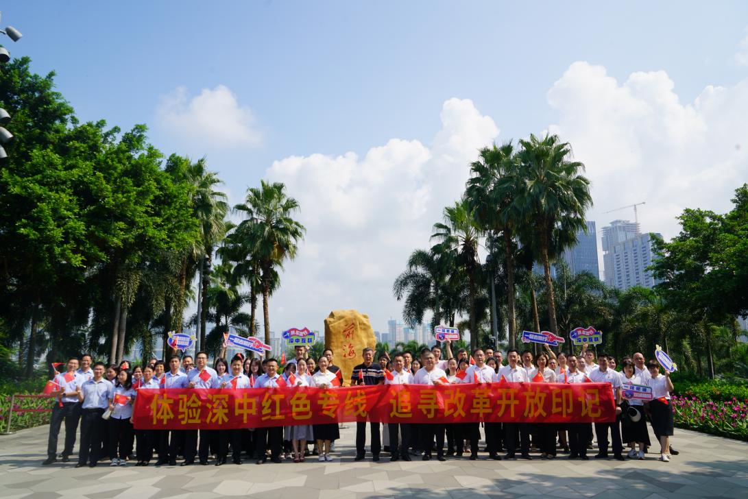 首发团乘坐专线车从中山出发,分别前往深圳前海石公园、前海展示厅等景点,寻访“红色印记”。