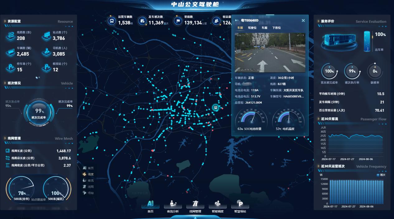 据悉,自该平台上线应用以来,取得了显著的应用成效。它极大提升了公交安全管理服务水平,实现驾驶员、车辆、场站、线路等各个环节的动静态安全管控。通过全面覆盖公交车厢的视频监控系统,为市民营造良好的公交出行环境,实现中山公交动态“一屏统管”、实时掌握,形成以科技信息化赋能公交智能安全管控的新局面。通过安装具有360度旋转调节、高清、夜视等功能的公交车载监控设施,可以实时掌握车辆运营状况、乘客乘车情况以及公交站点的交通秩序,并督促驾驶员安全行车、依规驾驶和文明服务等,以便为乘客提供更便捷、安全的服务。此外,中山公交集团依托该平台,持续优化公交运营效率和车辆投放计划,实现了日均客流增长1.45万人次,公交准点率达95.76%,为市民提供了更加准时、可靠、便捷的公交服务。