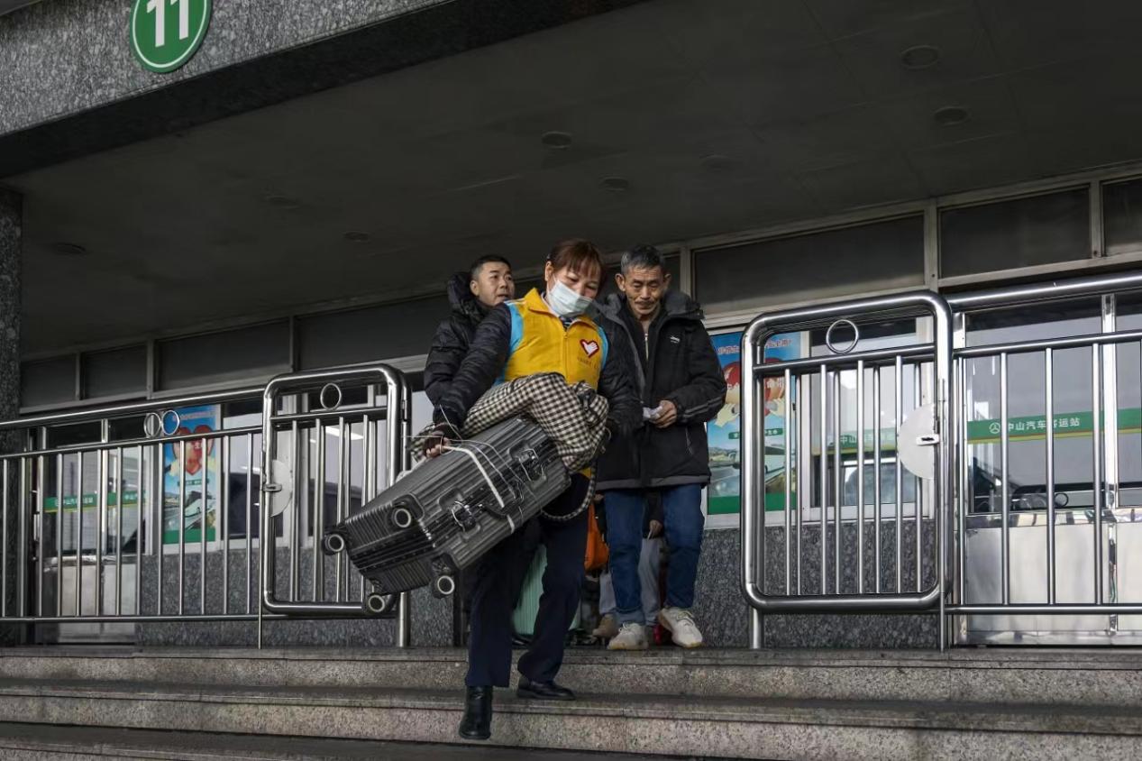 图为中山市汽车客运站志愿者为旅客提供暖心志愿服务
