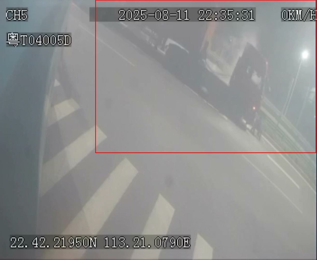 图为起火冒烟的红色货车