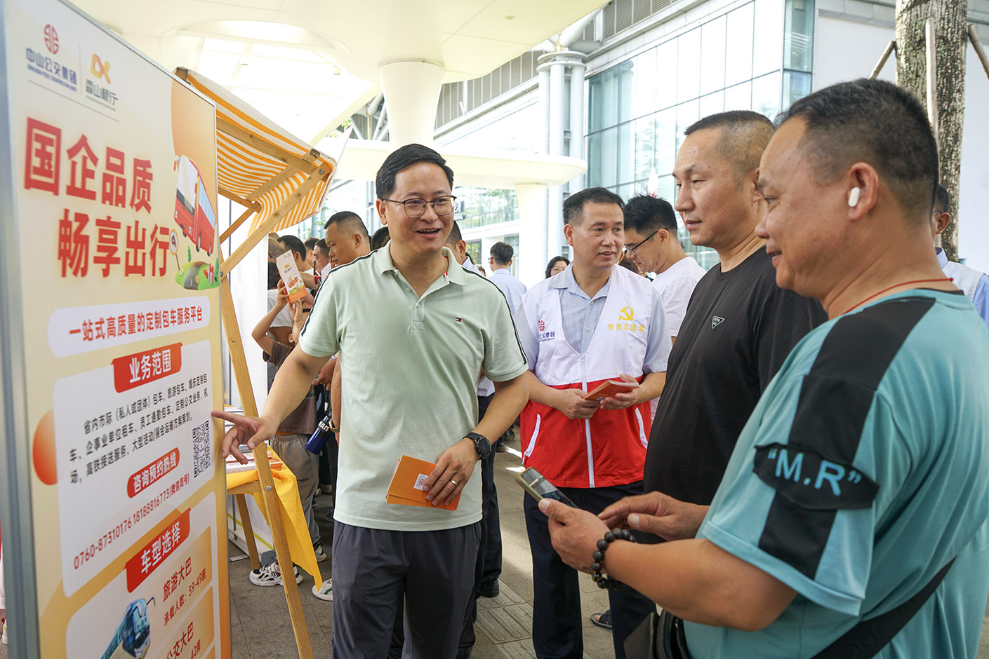 6月29日上午,值深中跨市公交开通一周年之际,在中山市交通运输局和中山城建集团的指导下,中山公交集团在深中跨市公交博览中心公交枢纽举办花样集市嘉年华活动。活动秉持“密切联系群众”与“厉行勤俭节约”两大原则,以浓郁的地方特色与创新活力,擦亮“初心引领·公交伴你行”党建品牌,吸引了众多市民和游客的热情参与,成为枢纽站一道亮丽的风景线。中山市东区街道远洋社区党委、新鳌岭社区党委等四方党建共建单位及深圳巴士集团等相关业务合作单位共同参与。
