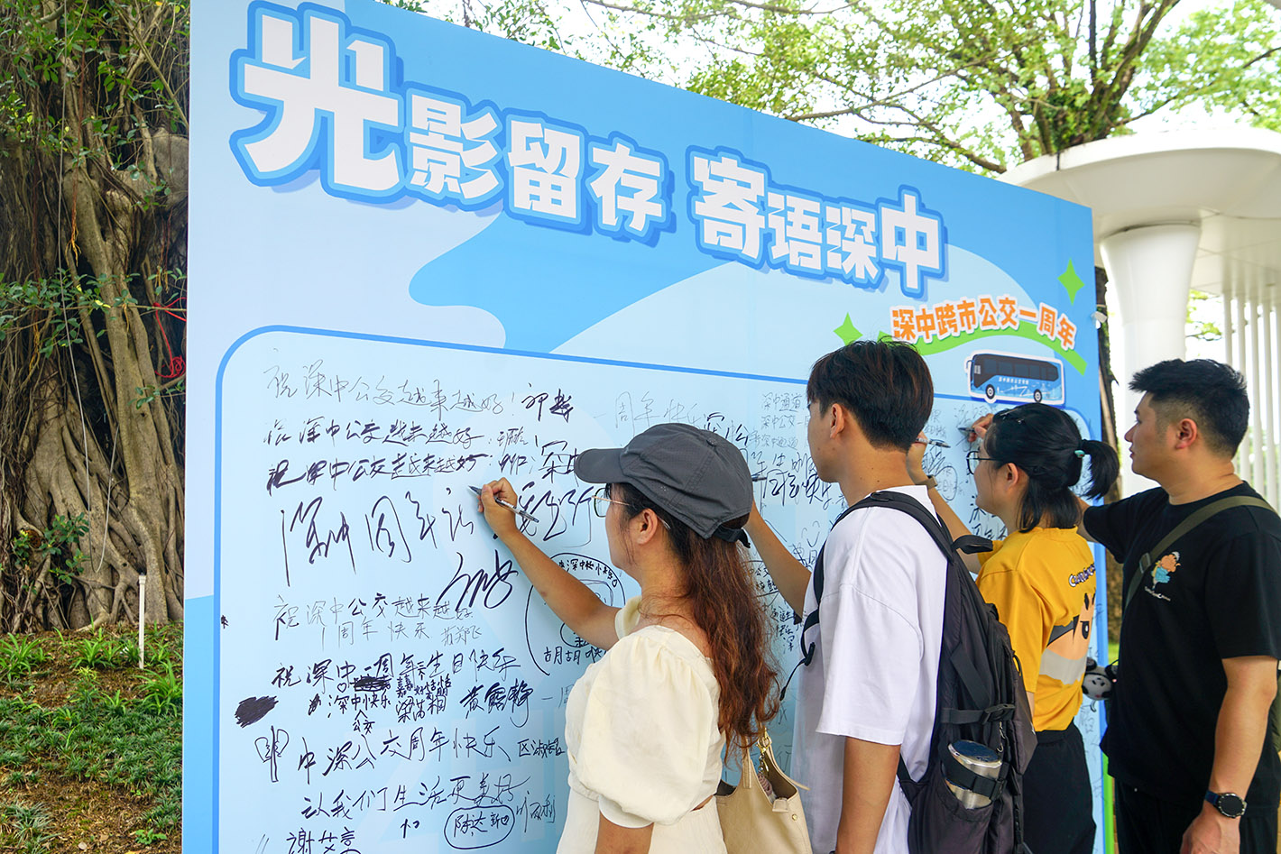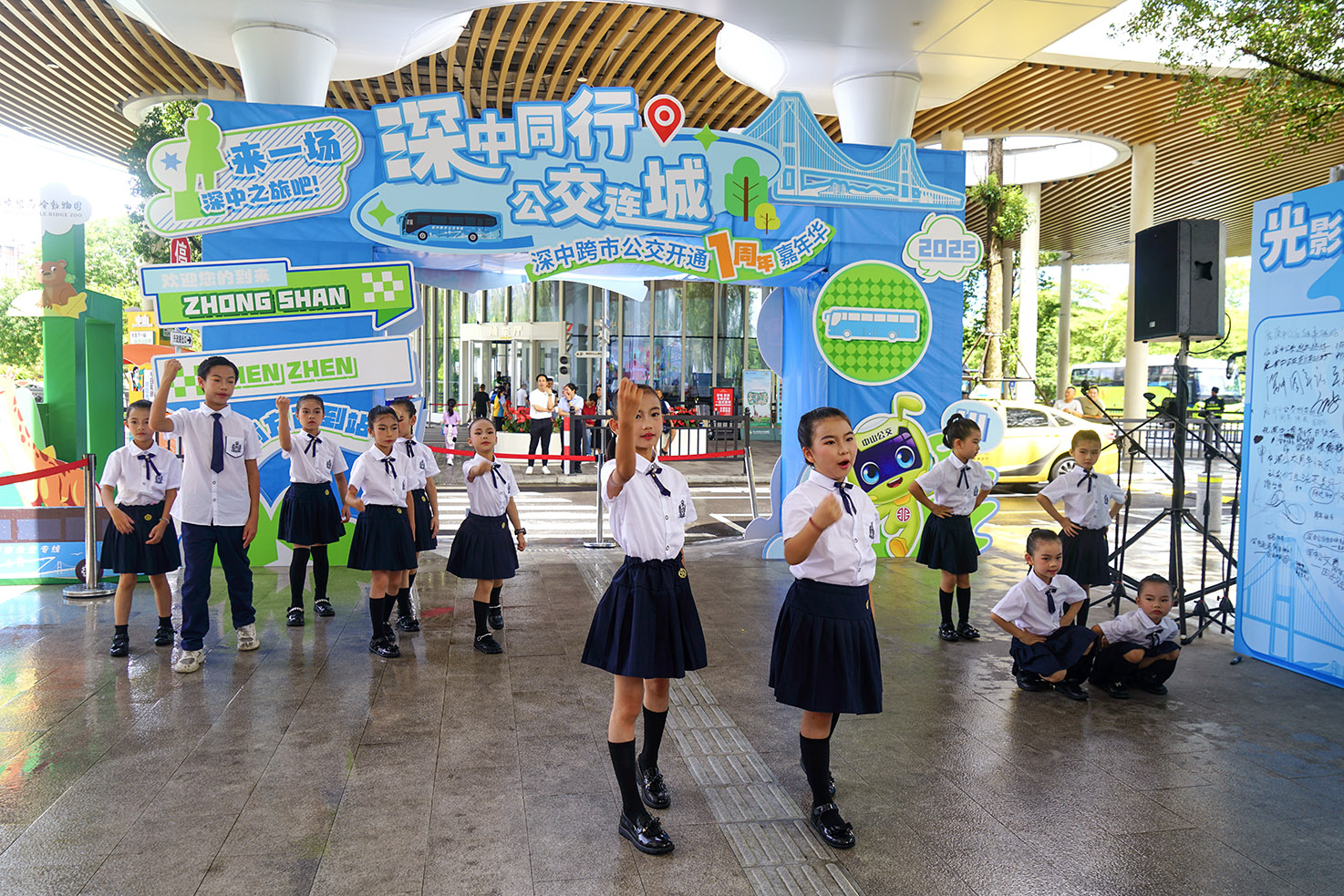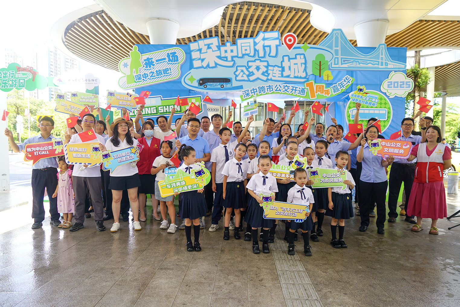 除了开展线下集市活动,中山公交集团近日也对博览中心、孙文公园等20个市中心站点公交候车亭进行焕新装饰,打造深中周年主题公交候车亭,以“绣花功夫”升级城市公共出行形象窗口,将城市基础设施转化为传递绿色环保、展现湾区风采的立体展台。