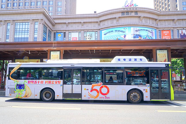 图为纯电动公交车在城市畅行